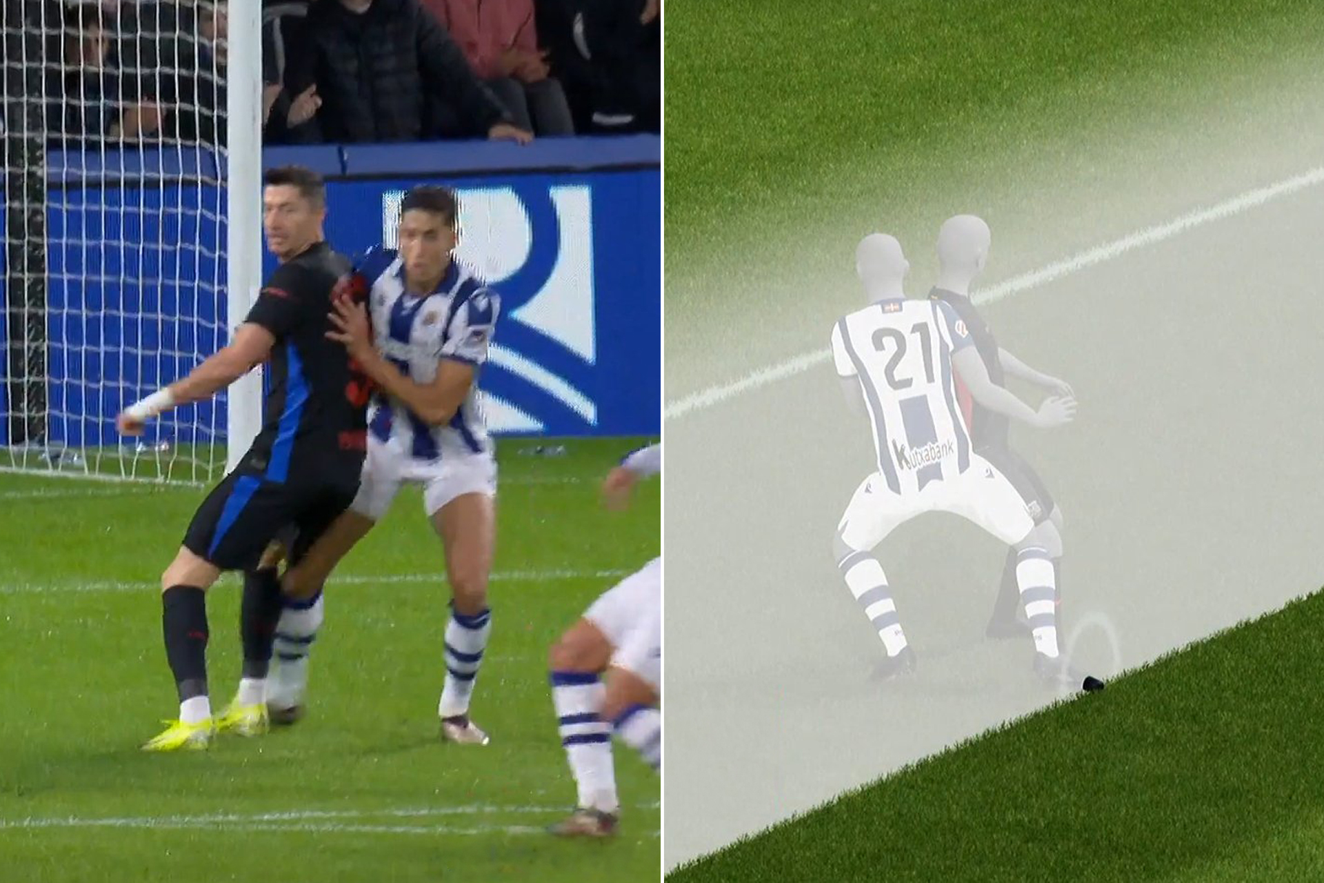 وقصة هدف ليفاندوفسكي بدأت، بعد أن تابع تسديدة زميله الهولندي فرينكي دي يونغ، التي ارتدت من جسد المغربي نايف أكرد مدافع سوسيداد، بتسديدة في الشباك، لكن تقنية الفيديو حرمت النجم البولندي من فرحة هدفه رقم 15 في الدوري.