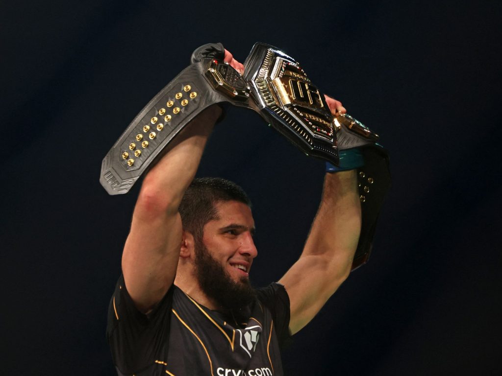 دقائق معدودات كانت كافية للمصارع الداغستاني إسلام مخاشيف للفوز على متحديه الأسترالي أليكسندر فولكانوفسكي بالضربة القاضية، ليتوج بلقب بطولة العالم للوزن الخفيف في الفنون القتالية المختلطة (يو إف سي).