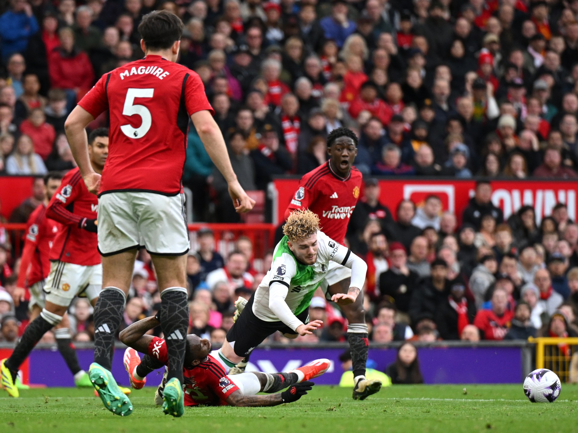 في الدقيقة الـ83، سقط الإنجليزي هارفي إليوت لاعب ليفربول في منطقة جزاء مانشستر يونايتد بعد التحام مع الإنجليزي آرون وان بيساكا، فاحتسب الحكم أنتوني تايلور ركلة جزاء انقسم حولها خبراء وجماهير اللعبة.