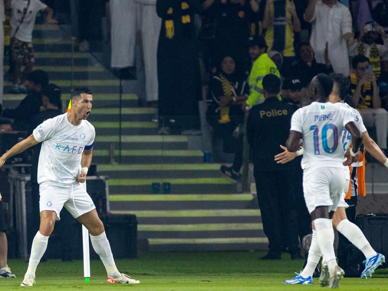 وبعد مضي 6 دقائق فقط من بداية الشوط الثاني، سجل حمد الله الهدف الثاني له وللاتحاد، لكن رونالدو سارع بتسجيل هدف التقدم للنصر في الدقيقة الـ68 من ركلة جزاء.