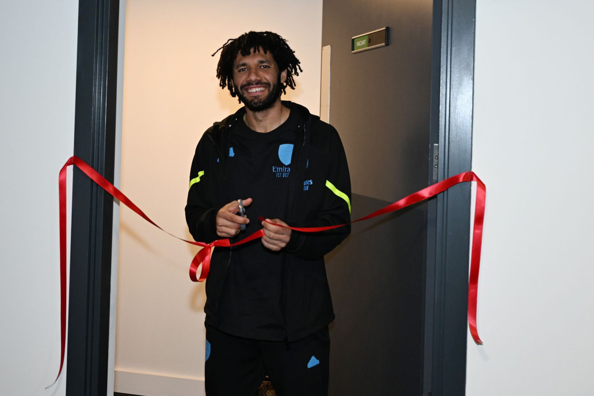 وظهر لاعب المنتخب المصري وهو يحمل مقصا افتتح به غرفة الصلاة التي قام باستعراضها في مقطع فيديو، موجها الشكر لإدارة وفريق العمل بنادي أرسنال.