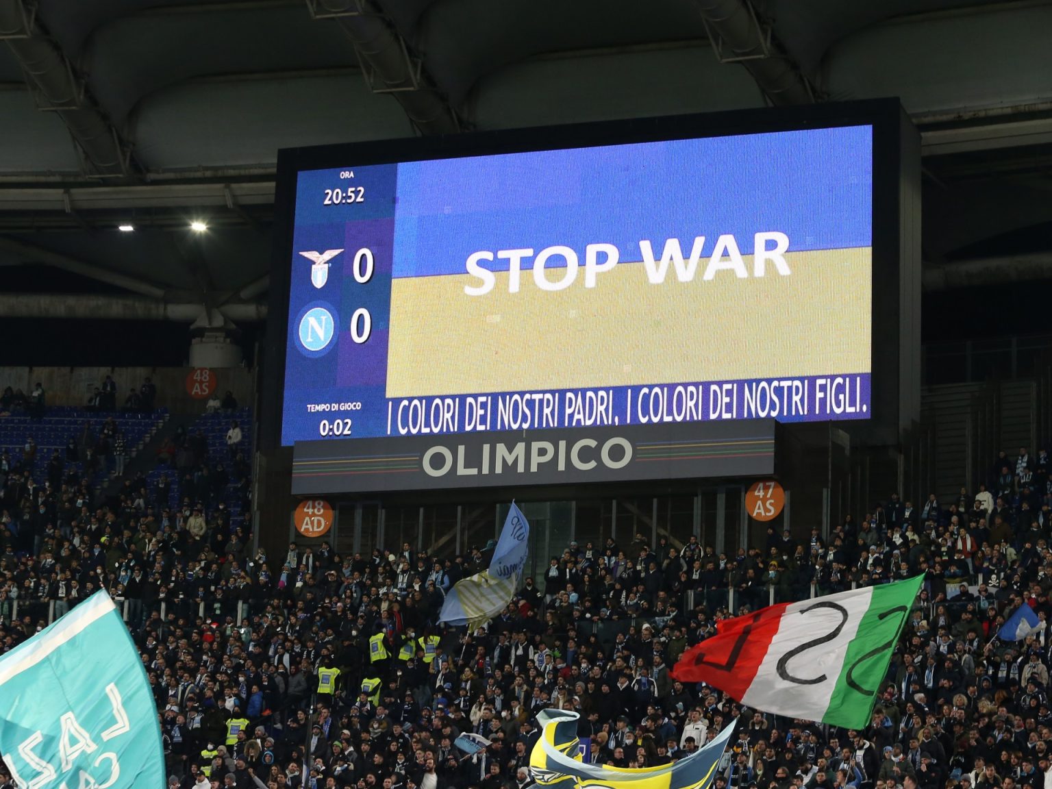 ولم يكن شعار الدعم لكييف فقط حاضرا الملاعب بل ارتفع شعار الجيش الأوكراني بدوري أبطال أوروبا، عن طريق الأوكراني رومان ياريمتشوك لاعب بنفيكا البرتغالي.
