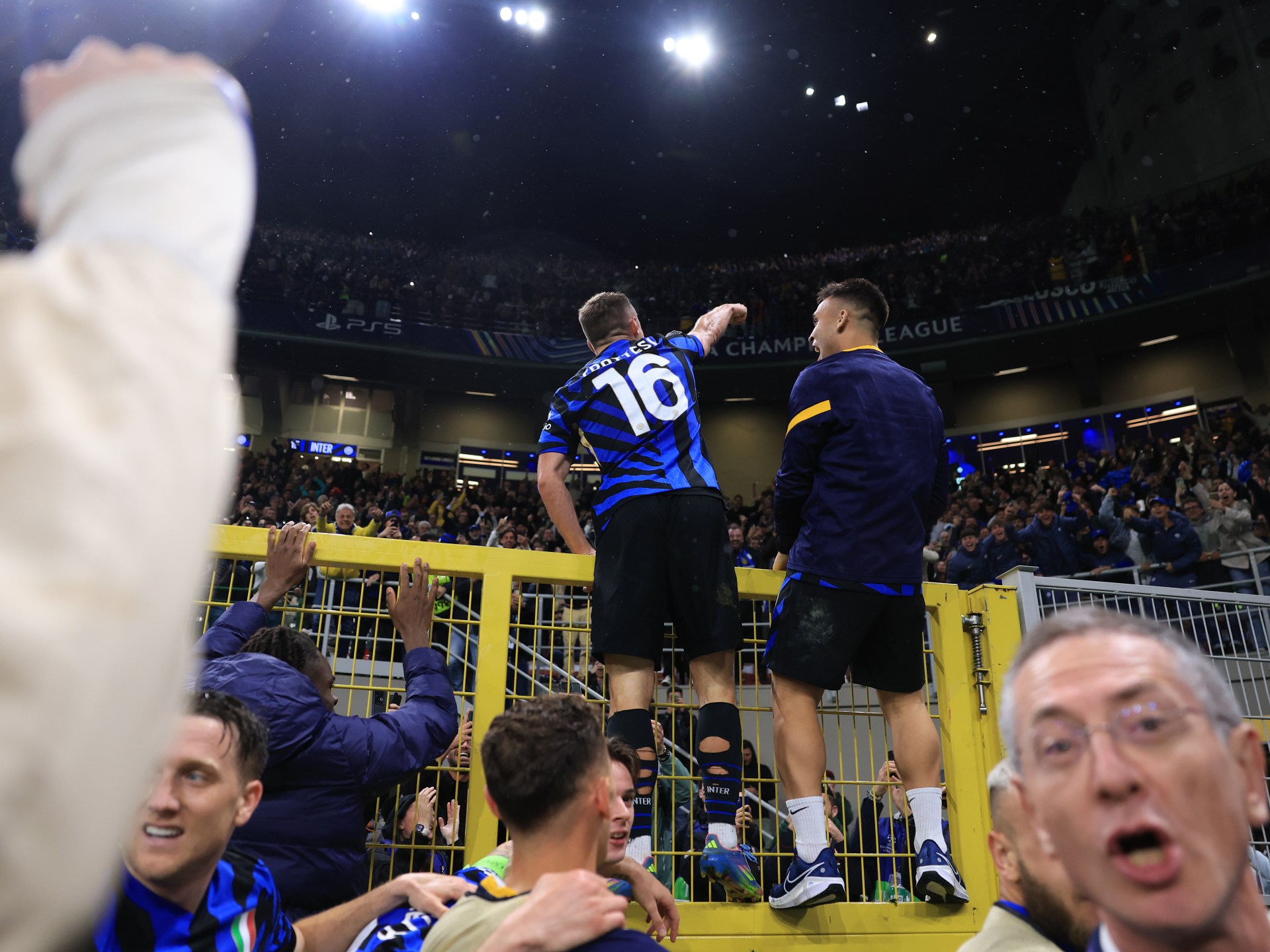 واحتفل اللاعب بجنون بالهدف حيث ركض باتجاه الخط الجانبي وتسلق سور الملعب من أجل الاحتفال مع جماهير إنتر وأطلق صيحات هستيرية.