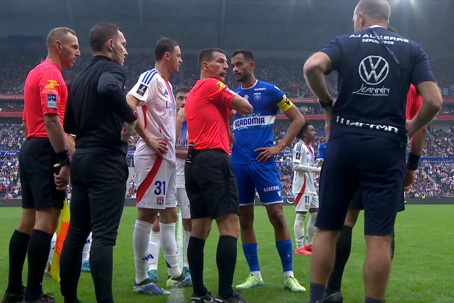 بعد احتساب ركلة مرمى في البداية، استدعى حكم الفيديو المساعد جيريمي ستينات حكم المباراة لمراجعة ركلة جزاء محتملة على ميكاوتادزه لاعب ليون ليعلن بعدها عن ركلة جزاء لصالح ليون في الدقيقة الـ41.