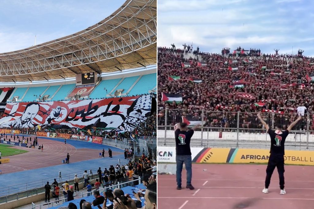 فلسطين وغزة.. تحية استثنائية من جماهير الترجي وجماهير الوداد تزلزل مدرجات الملعب