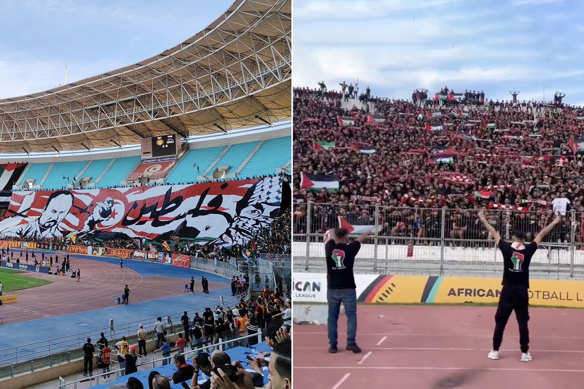 تفوقت جماهير الترجي التونسي، على نفسها وقدمت التحية إلى فلسطين وغزة بطريقة استثنائية، لا تزال حديث الإعلام ووسائل التواصل الاجتماعي وذلك في فوز فريقها -أمس- بثلاثية نظيفة على “تي بي مازيمبي” من الكونغو الديمقراطية، في إياب ربع نهائي الدوري الأفريقي لكرة القدم.