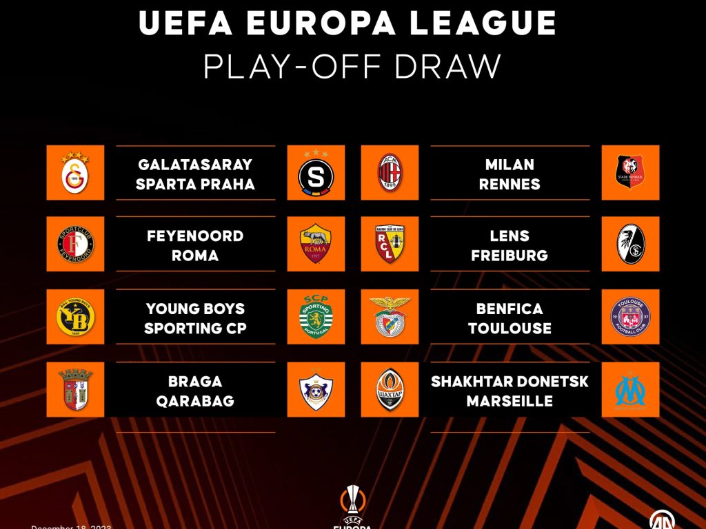 يلتقي فينورد الهولندي مع روما الإيطالي في قمة ملحق الدور المؤهل إلى ثمن نهائي مسابقة الدوري الأوروبي (يوروبا ليغ) في كرة القدم، بموجب قرعة سُحبت الاثنين في مقر الاتحاد القاري في نيون السويسرية.
