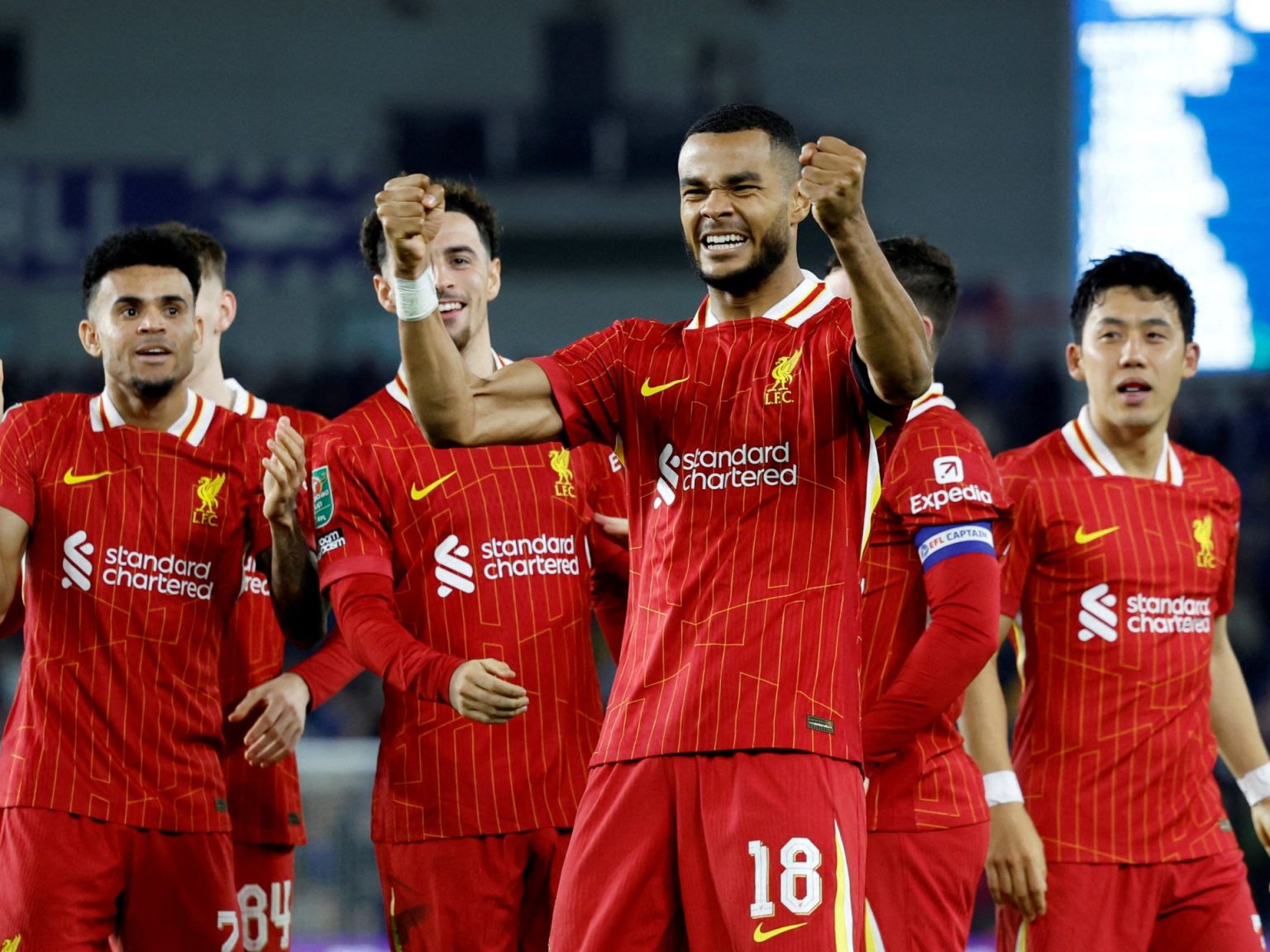 ويدين “الريدز” للهولندي كودي خاكبو (46 و63) والكولومبي لويس دياس (85) في حين سجل الإيفواري سيمون أدينغرا (81) والغاني طارق لامبتي (90) لبرايتون.