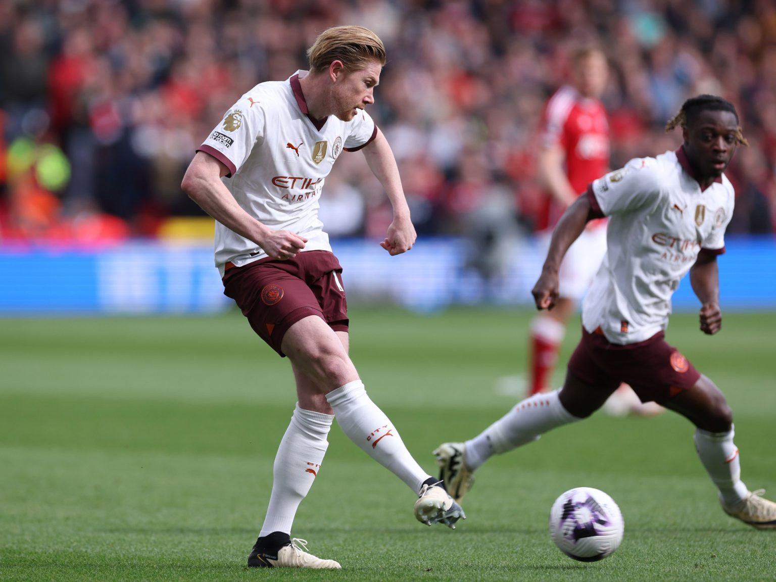 وصنع دي بروين هدفا لجوسكو غفارديول وآخر لإرلينغ هالاند ليفوز مانشستر سيتي 2-صفر على نوتنغهام فورست أمس الأحد في الدوري الممتاز.