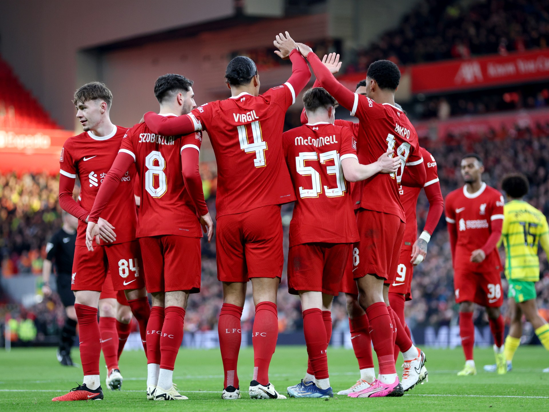 سجل خماسية ليفربول كورتيس جونز (16) والأوروغواياني داروين نونييس (28) والبرتغالي ديوغو جوتا (53) والهولنديان فيرجيل فان دايك (63) وراين خرافنبرخ (90+5)، ولنوريتش بنجامين غيبسون (22) وبورخا ساينس (69).