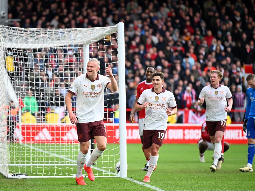 قطع مانشستر سيتي خطوة أخرى في محاولته للفوز بلقب الدوري الإنجليزي الممتاز لكرة القدم للمرة الرابعة تواليا اليوم الأحد بتغلبه 2-صفر على مضيفه نوتنغهام فورست المهدد بالهبوط لينفرد إرلينغ هالاند مجددا بصدارة هدافي المسابقة.