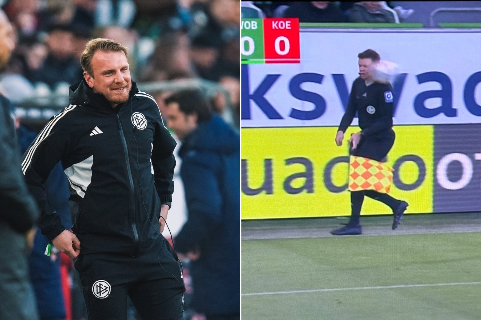 وبعدها استفسر المذيع الداخلي للملعب من الجمهور عن وجود شخص بين الحاضرين يحمل رخصة حكم حتى تقدم توبياس كرول لاعب فولفسبورغ السابق الذي يبلغ من العمر 32 عاما ليتولى المهمة.