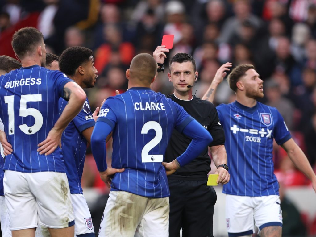 ولأن المصائب لا تأتي فرادى حصل كلارك على إنذار ثان ليغادر الملعب مطرودا في الدقيقة الـ69.